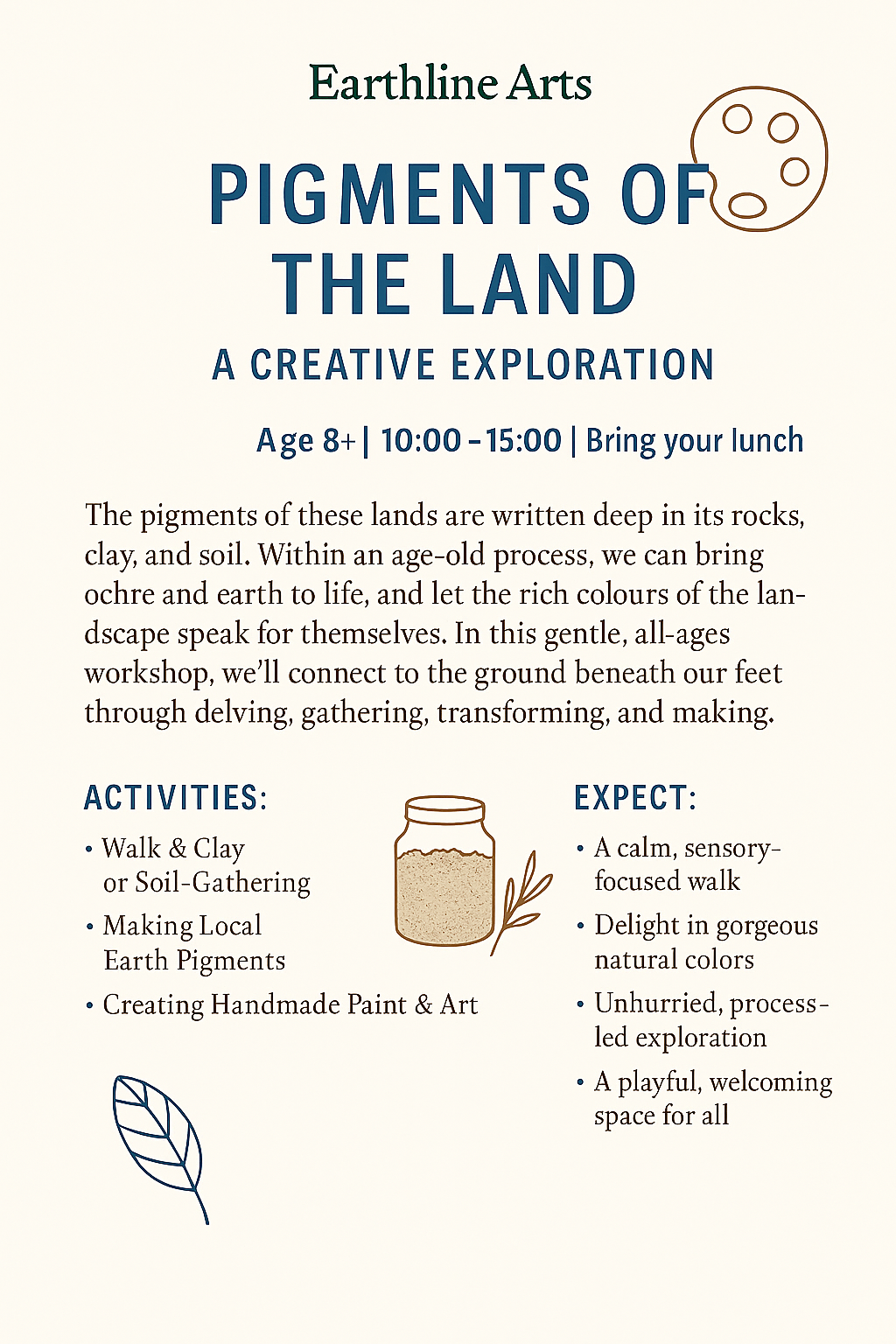 Step into the slow rhythm of the land. This hands-on workshop invites you to dig a little deeper - foraging for earth pigments, grinding wild colour, shaping with clay, and letting the landscape lead the way…